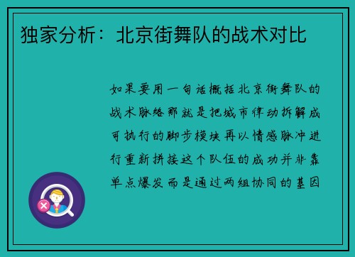 独家分析:北京街舞队的战术对比